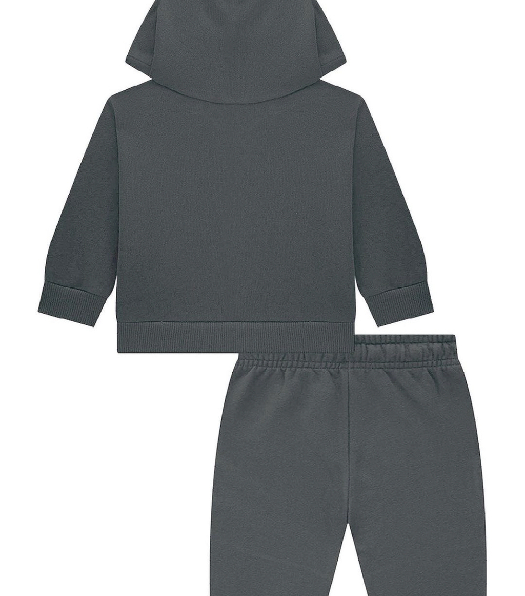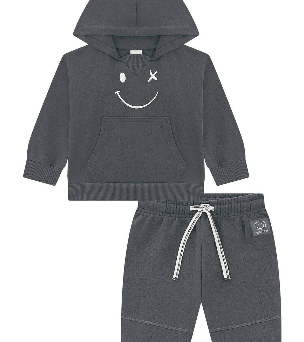 Conjunto De Jaqueta Com Capuz e Calça em Moletom, conjunto formado por jaqueta e calça. A jaqueta com capuz confeccionada em moletom. Possui detalhe aplique de faixa personalizada. Cós com elástico e cadarço para amarração. Moderno e versátil, a seleção de conjuntos é perfeita para os looks do dia a dia do menino.
