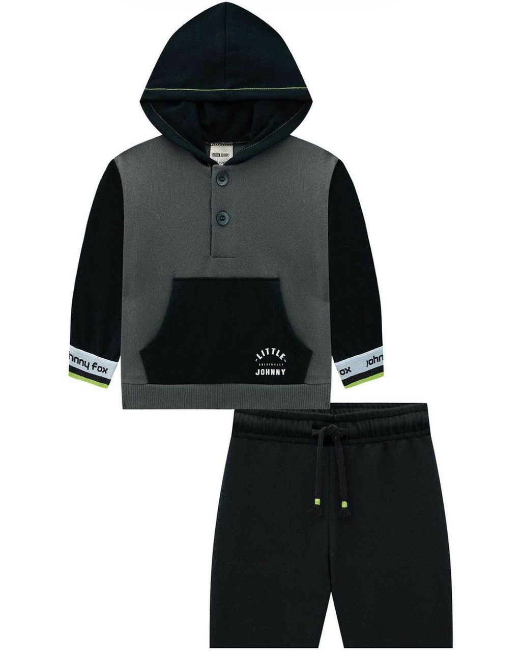 Conjunto De Jaqueta Com Capuz e Calça em Moletom, conjunto formado por jaqueta e calça. A jaqueta com capuz confeccionada em moletom. Possui detalhe aplique de faixa personalizada. Cós com elástico e cadarço para amarração. Moderno e versátil, a seleção de conjuntos é perfeita para os looks do dia a dia do menino.