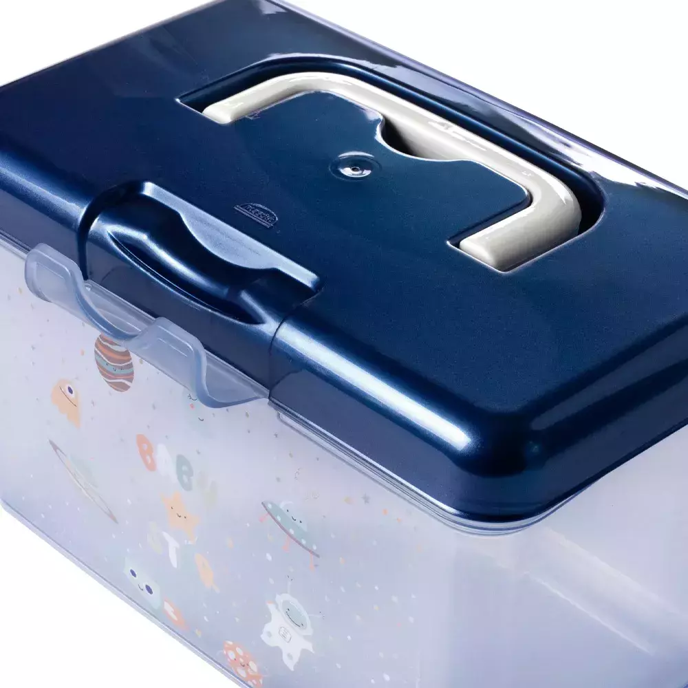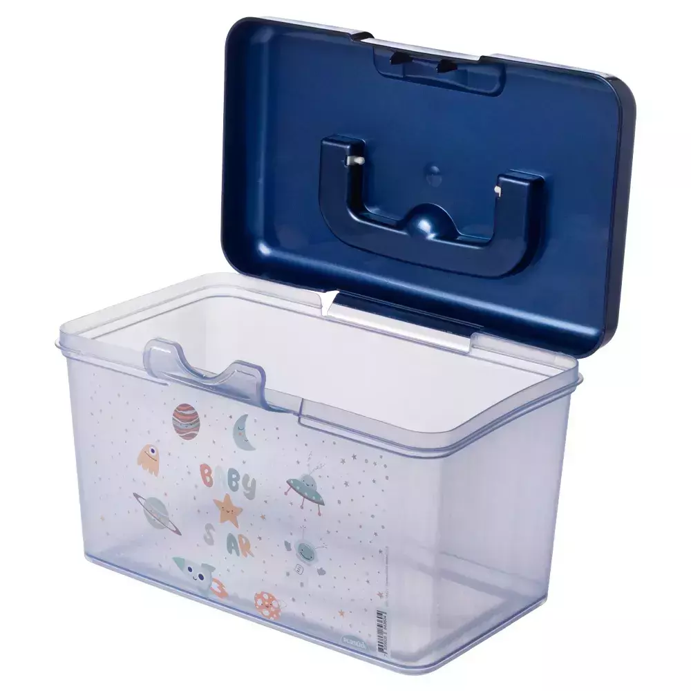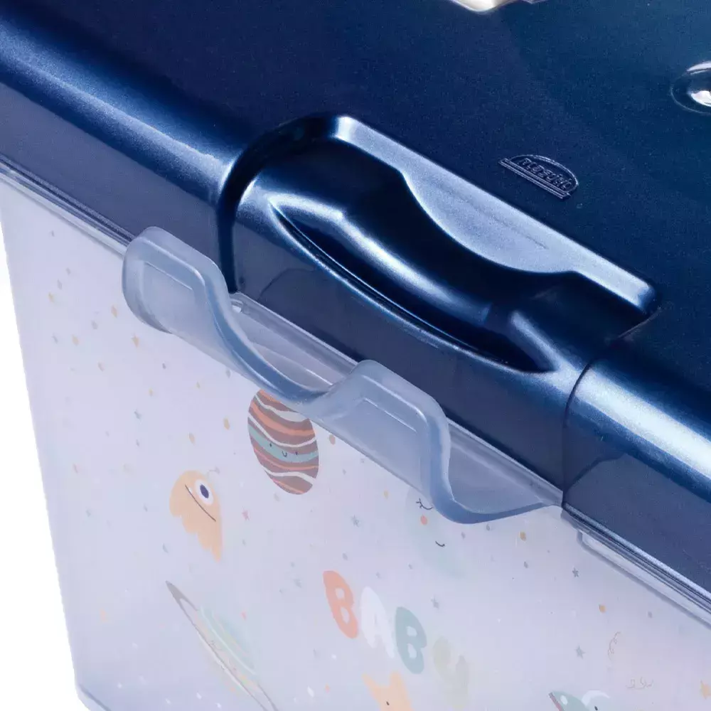 BPA FREE: livre de bisfenol-A e atóxico. Fabricado em plástico polipropileno (PP). - A maleta possui alça para facilitar o manuseio e trava para garantir fechamento seguro. Ela não possui divisória interna. - Sugestão de uso: Farmácia: organização de medicamentos; Documentos: informações do (a) bebê em lugar de fácil acesso; Brinquedos: separação dos itens usados diariamente.