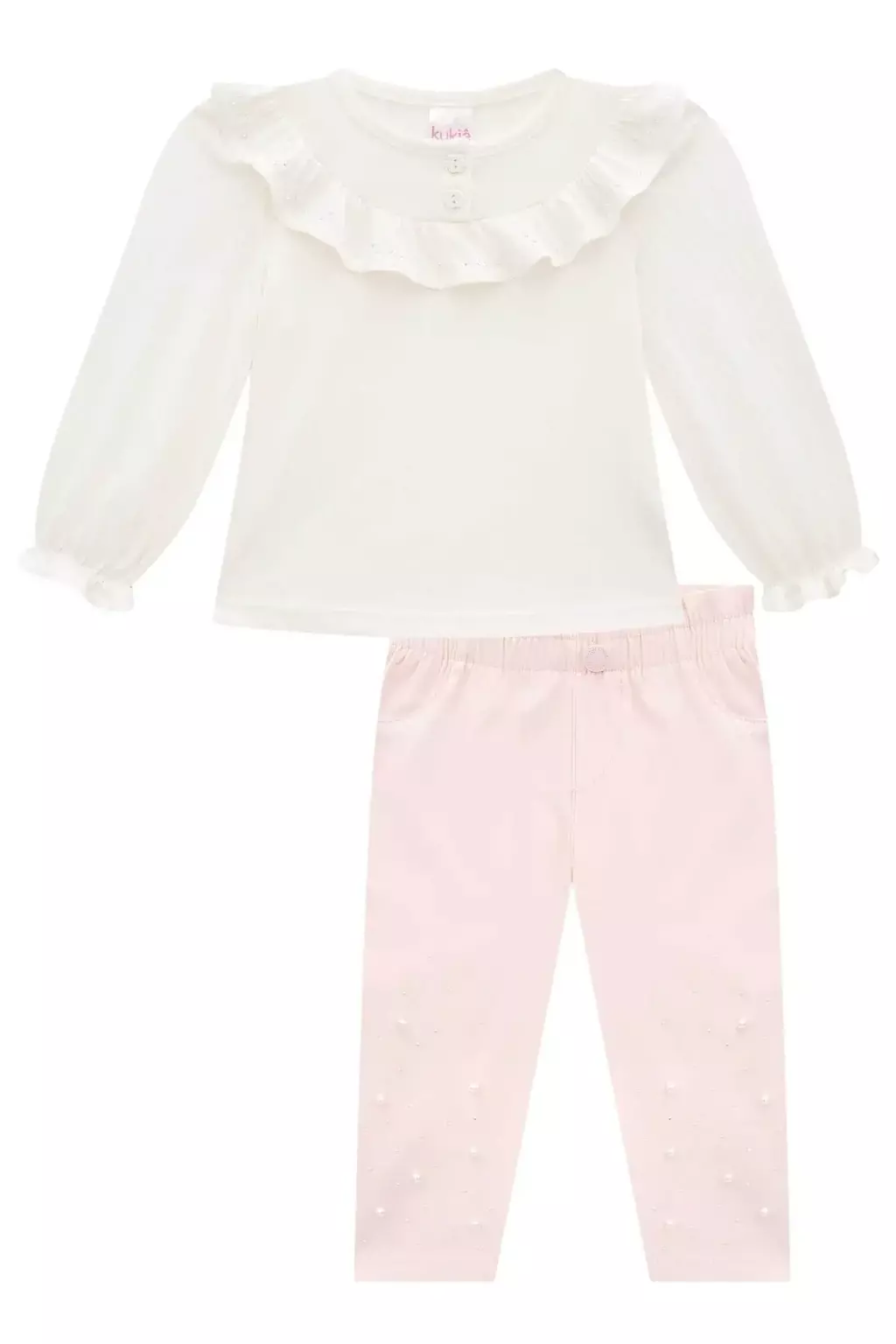 Conjunto de Bata em Malha Wave e Calça em Sarja Stretch 71675 Kukiê superconfortável e estiloso.