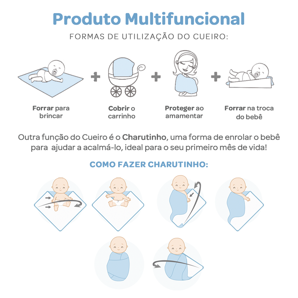• Pode ser usado para enrolar o bebê em forma de charutinho e acalmá-lo.