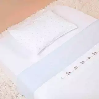 Medidas: virol: 1,40m x 1,0m / lençol com elástico: 1,30m x 70cm x 12cm / fronha: 40cm x 28cm.